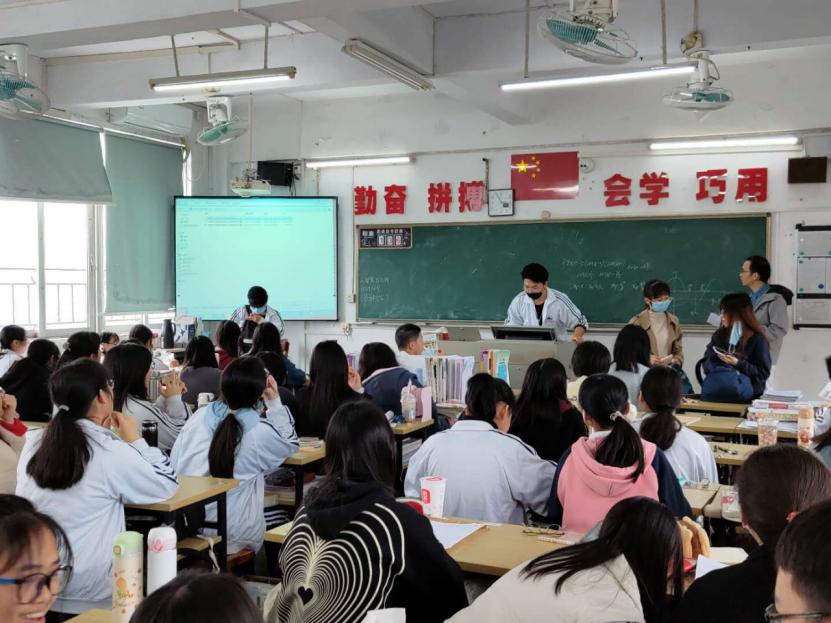 线下,队员们采取走班形式,由队长结合PPT向高三学子们介绍公司的基本情况,队员们分发宣传手册,播放莞工的招生宣传片。此外,为加大宣传力度,寒招队伍也通过腾讯会议平台开展线上宣讲,并在微信、QQ上建立群聊进行线上解答。寒招队员与高三学子们交流融洽,不仅积极展示了莞工风采,分享高考经验,也热情讲解了有关选择高校与专业方面的疑问,为高三学子们提供了一定的帮助。