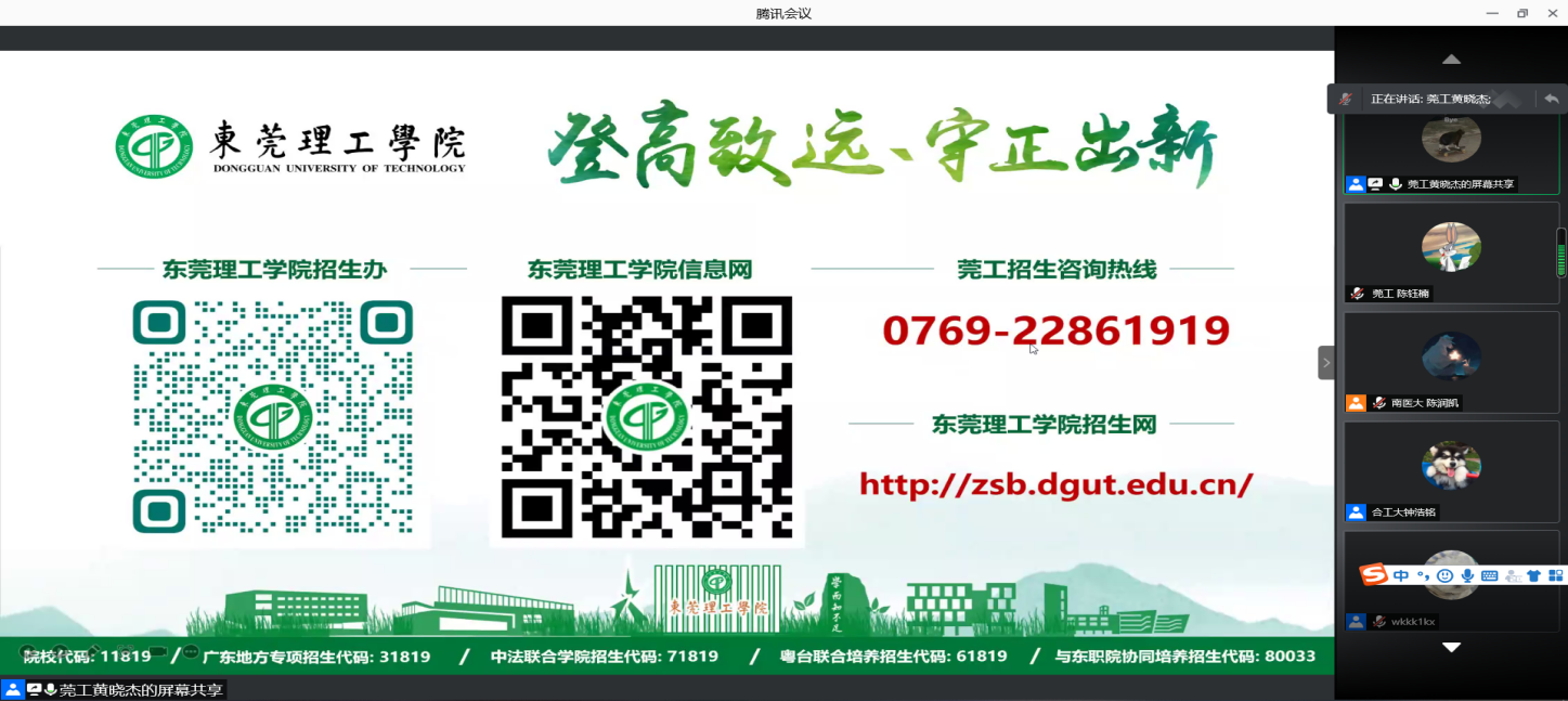 2月1日早上8:30,直播正式开始。各高校的寒招队伍宣讲人先从自身的高考备考经历出发,向师弟师妹们传授、交流经验,之后通过视频、PPT演讲等方式对所在大学的情况进行介绍。公司的寒假招生宣传分队在直播中播放了官网招生宣传片,并从公司概况、人才培养、校园生活以及招生情况等多个方面对莞工进行了详细的介绍与宣传。