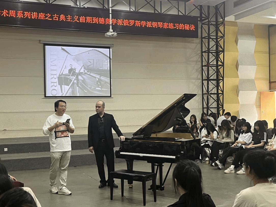 2023年11月30日,公司邀请巴西籍钢琴家、作曲家Artur Cimirro为音乐舞蹈系同学开展以“古典主义前期到德奥学派俄罗斯学派钢琴家练习秘诀”为主题的讲座。Artur Cimirro采用钢琴演奏与英语演讲(辅以汉语翻译)相结合的方式,围绕古典主义前期到德奥学派俄罗斯学派钢琴家练习秘诀的主题,分享该学派的独特练习技巧,引导同学们掌握和理解高效率的钢琴练习方法,学习中外音乐文化的特色,让同学们在领略外国音乐文化的同时,传承和创新中国优秀的传统音乐,增强同学们的文化自信。