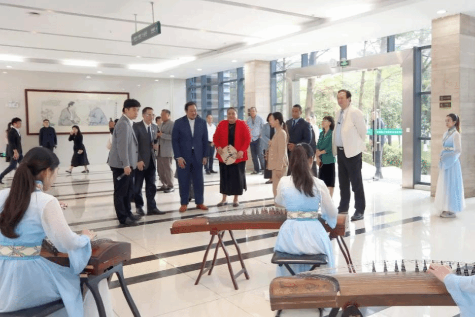 另外,在12月1日汤加代表团到访公司的考察参观活动中,公司民族乐团现场进行了《茉莉芬芳》古筝弹奏演出。