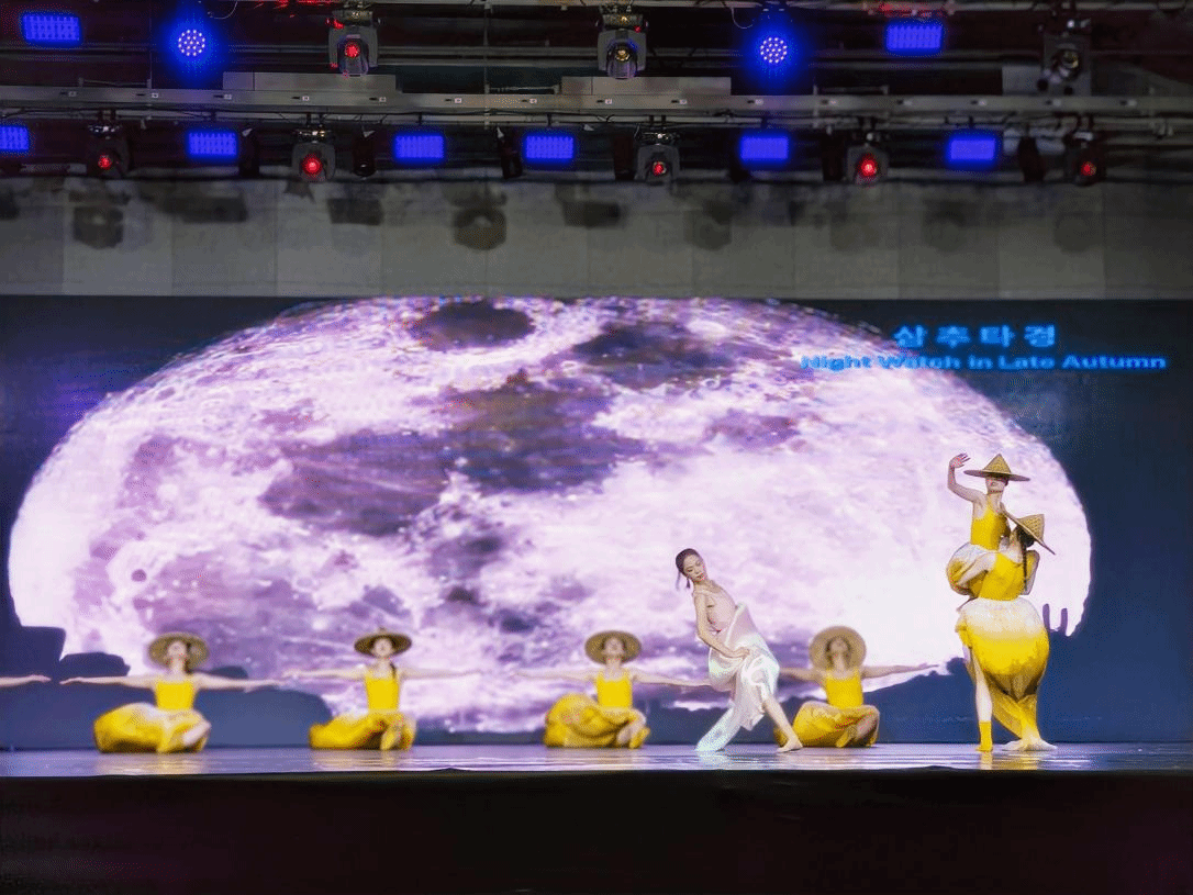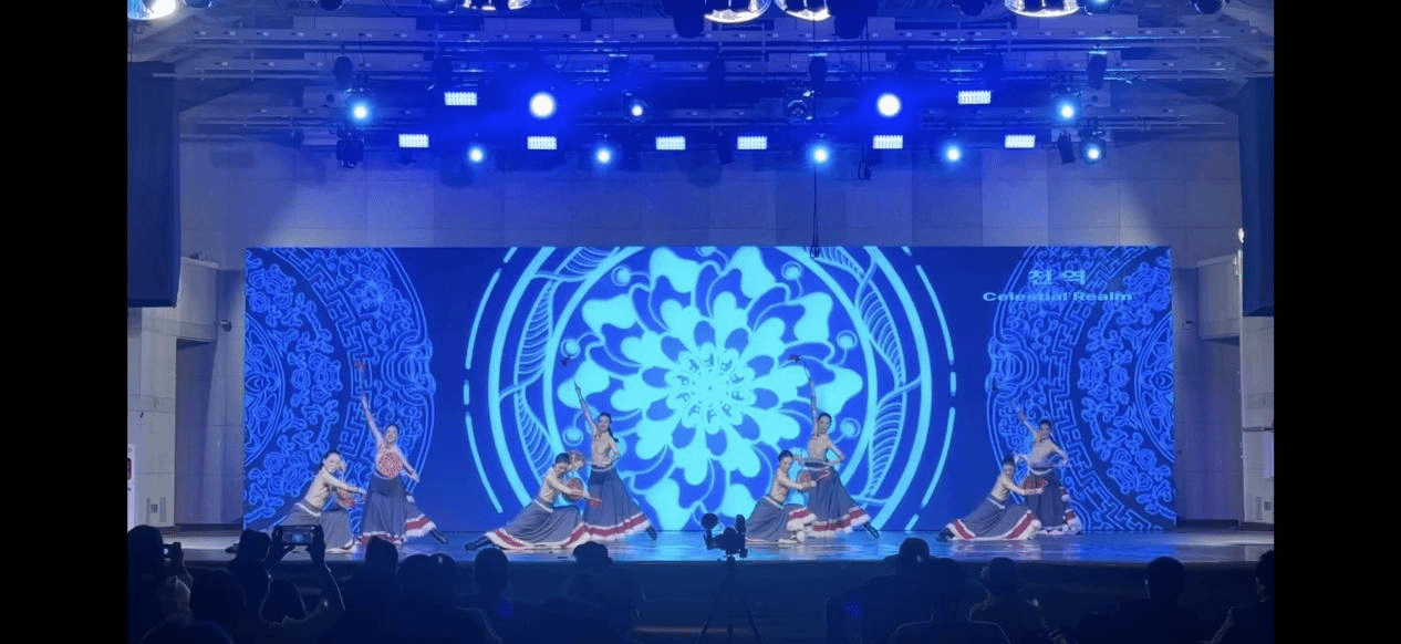 9月13日至14日,为期两天的演出在牙山市新昌湖户外音乐厅顺利举办。舞台上,“莞工艺韵”舞蹈团的表演亮点纷呈。由孙海怡老师编创的汉族舞蹈《三秋打更》率先亮相,以梆子打更声为引,搭配富有诗意的肢体语言,将中原大地“秋收—守护—庆典”的时序故事缓缓铺展;李卉老师创编的原创作品则取材于广东潮汕地区极具代表性的“快板英歌”,鼓槌起落间,时而如惊雷乍响,时而沉稳定乾坤,尽显岭南英雄的豪迈气概;张贻华老师指导的藏族热巴鼓舞《天域》,凭借演员们自如挥舞的热巴鼓与悠长婉转的曲调,将青藏高原的神秘信仰与独特风情传递给现场每一位韩国观众。演出落幕时,现场掌声经久不息,牙山市文化福祉局长김만섭(KIM MANSEOP)更是亲自为舞蹈团颁发“文化交流贡献奖”,以表彰其在文化交流中的突出表现。